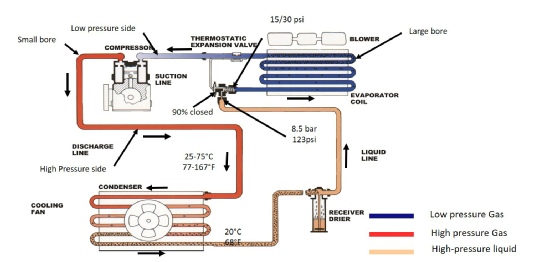 Fixed orifice tube & Accumulator Air-con system, Note the Accumulator is on the Low side of the System